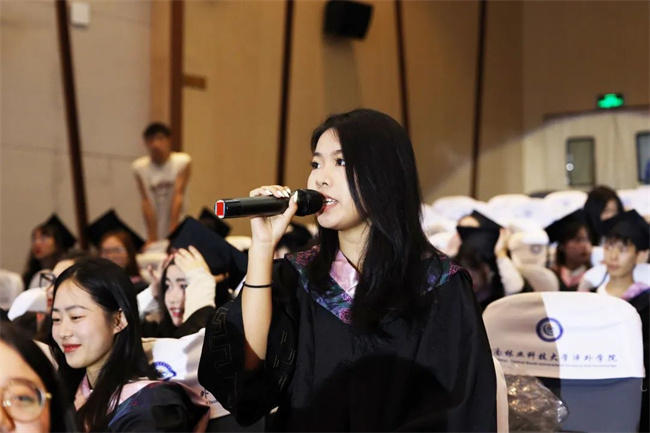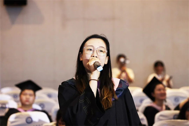 院长周志宏在致辞中表示,对于2023届毕业生来说,大学大半时间都在席卷全球的新冠疫情中度过,可能会有些许遗憾,但唯一不变的就是改变,同学们要勇敢地迎接改变,从容面对未来的道路。毕业在即,他用三句话嘱托毕业生:一要找到你的生活重心,学会在社会和家庭中,找到自己的位置,把握自己的生活重心,成为一个快乐、健康、充满目标的人,常怀感恩心,常念相助人;二要照顾好你的身心健康,离开这精神内耗的循环,踏实做人,踏实做事,培养控制自我的能力;三要肩负起年轻一代的社会责任和使命,开拓眼界与胸怀,找到人生真谛、生命价值与事业方向。祝福毕业生此去前程似锦,归来依然美好。