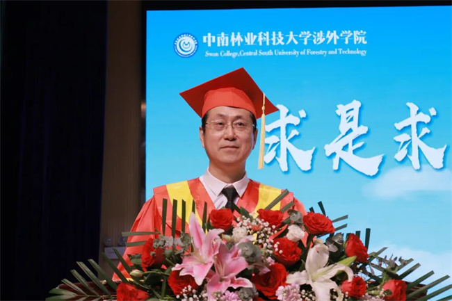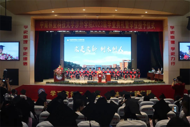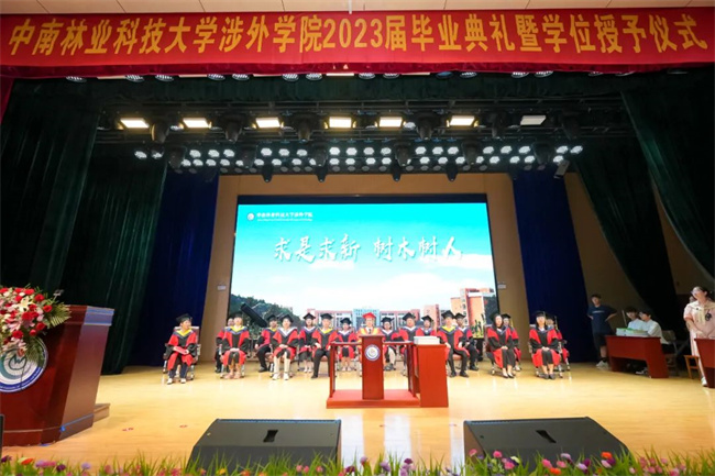 毕业生以梦为马即将踏歌远行,母校以爱之名繁花相送,为大家的毕业之旅壮行。6月12日至13日,中南林业科技大学涉外学院2023届毕业典礼暨学位授予仪式在学术报告厅隆重举行。学院领导、学位评定委员会委员、导师代表、毕业生辅导员及2023届全体毕业生参加此次毕业典礼,典礼由副院长马宗艳主持。