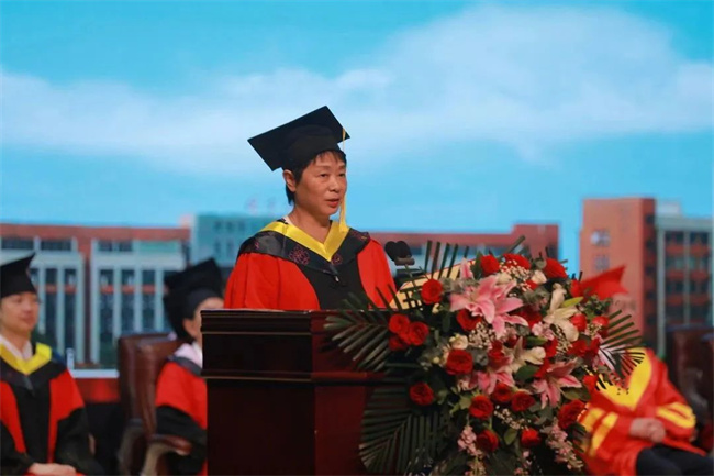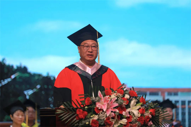 董事长朱定强在致辞中表示,毕业是一段旅途的终点,却也是新征程的起点,毕业生们恰逢波澜壮阔的新时代,要肩负起时代赋予的使命,勇敢踏上时代的巨轮。他诚挚地寄语毕业生们:要树立远大志向,提高人生境界,把自己的前途同国家的发展紧密相连,在与国同行中实现人生价值;要懂得在困境中磨练心智,在顺境中强化忧患意识,在平淡中把生活过得有滋有味;要努力在不确定的外部环境中找到确定的个人坐标和前进方向,朝着既定目标奋力奔跑。青春赛道千万条,奋力奔跑第一条,踏过千重浪,希望全体毕业生不忘少年样,逐梦向未来。