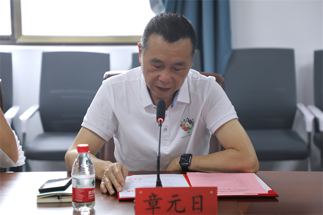 党委书记章元日宣读《中南林业科技大学涉外学院关于成立大美研究院的决定》文件。