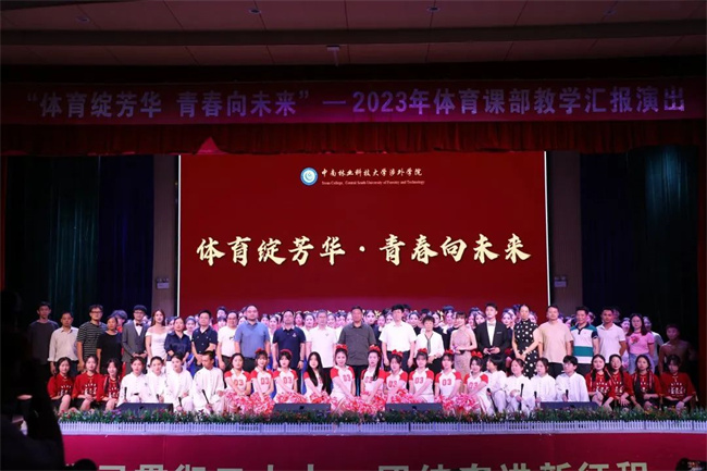 为进一步推进素质教育,促进学生身心健康发展,6月15日下午,中南林业科技大学涉外学院2023年“体育绽芳华 青春向未来”体育教学汇报演出在学术报告厅隆重举行。学院领导朱定强、周志宏、盛均全、马宗艳与师生们一同观看了汇报演出。
