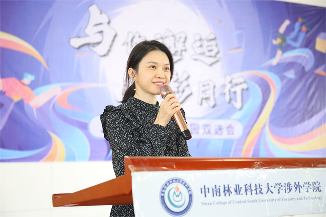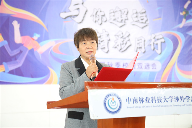 望城区人力资源开发和就业服务中心主任刘飞瀑作为嘉宾代表发言,她表示很荣幸能够参加此次中南林涉外秋季校园双选会,高校毕业生的就业是保障就业工作的重中之重,望城将提供更贴心的服务、更好的环境支持激励高校毕业生在望城创业就业。希望同学们树立正确的就业观,客观看待自身条件和岗位需求,锤炼自身本领,强化综合素质,保持积极向上的就业心态寻找适合的工作岗位。