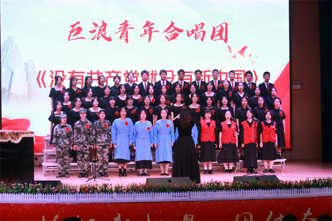 信息与工程学院群英荟萃队和繁星合唱团两支队伍带来自选歌曲《强国一代有我在》与《国家》,他们是两支“放歌美丽涉外,唱响红色情怀"的队伍,在合唱中表达他们“逐梦向未来”,“强国有我在”,”不忘初心"的理想信念。