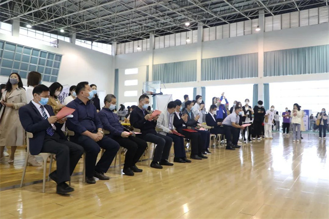 为贯彻习近平总书记关于做好高校毕业生就业工作的重要指示精神,切实推动毕业生就业工作,大力搭建毕业生与用人单位双选交流平台,保障毕业生顺利就业、高质量就业,5月19日上午,我院2022届毕业生春季校园双选会在体艺馆三楼举行。望城区人社局党组成员、副局长毛朝阳、望城区人力资源和就业服务中心主任李淞,学院领导周志宏、章元日、盛均全、马宗艳、孟志波、张康龙、叶国安、刘诗福出席本次双选会。开幕式由副院长马宗艳主持。
