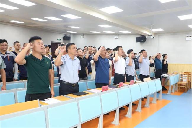 参战小组组长代表周海斌发言。作为代表郑重承诺:服从领导,听从指挥;严守纪律,勤恳务实;认真负责、严控严管;加强个人修养,廉洁奉公。