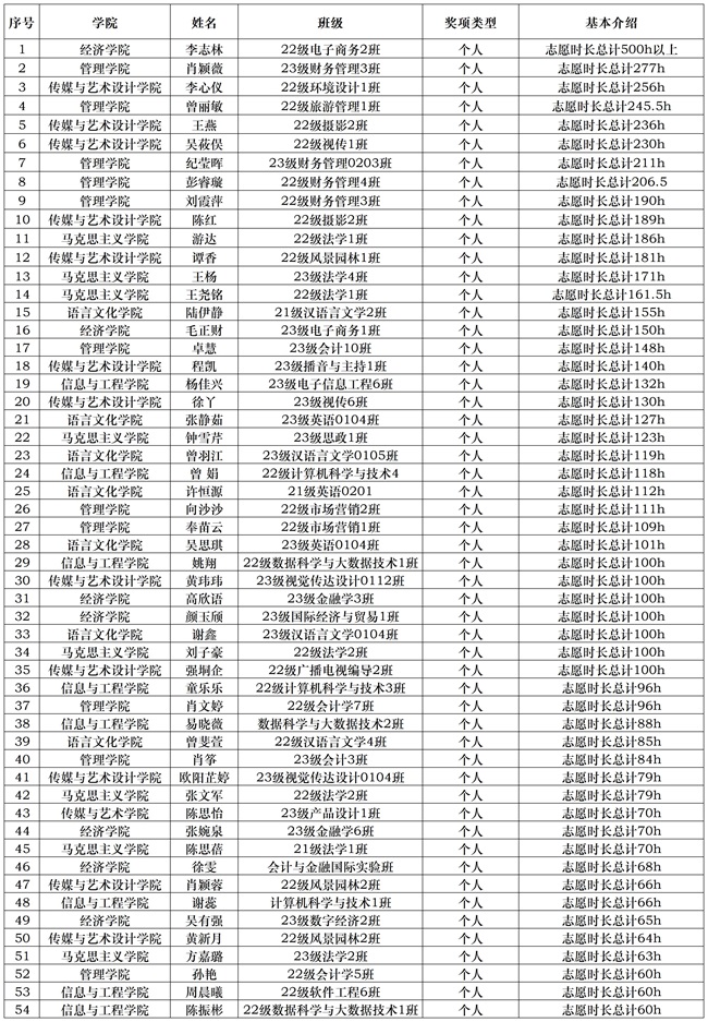 关于中南林业科技大学涉外学院2023-2024学年“星辰·公益”荣誉称号评选结果的公示