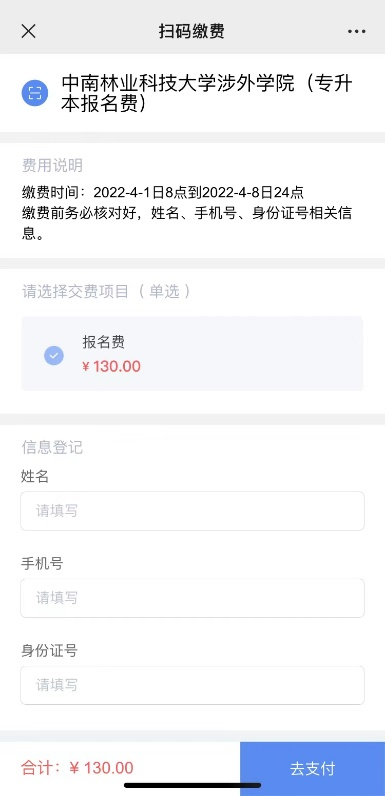 中南林业科技大学涉外学院2022年“专升本”考试缴费通道再次开放的通知
