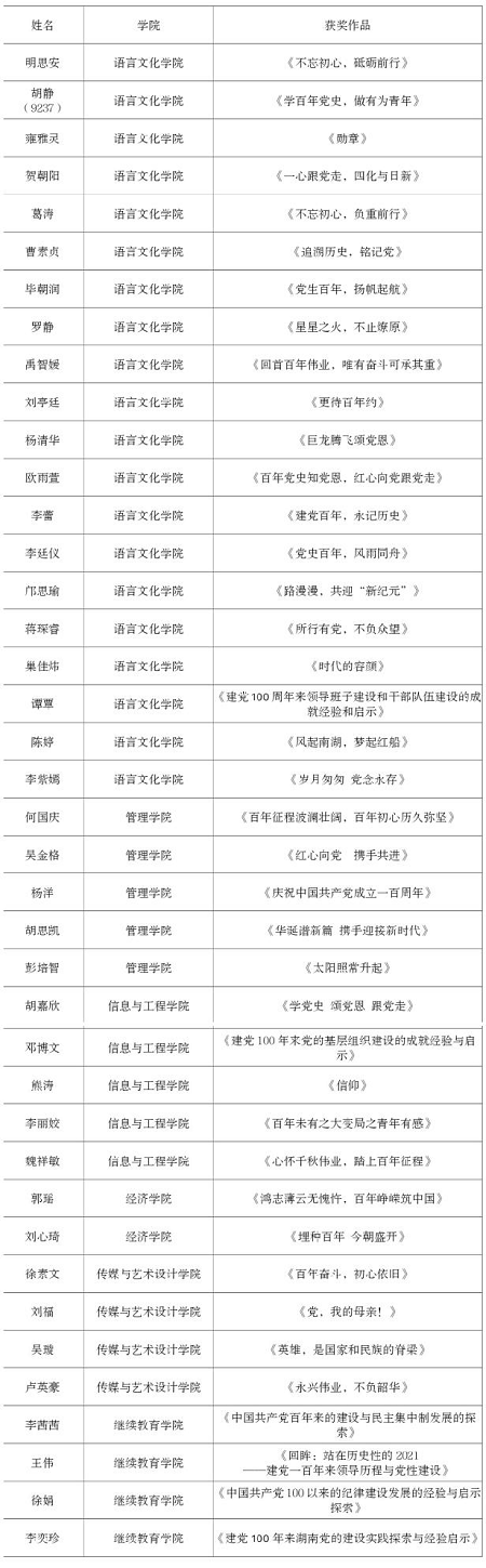 为扎实推进党史学习教育,贯彻落实习近平总书记重要讲话精神,根据《中南林业科技大学涉外学院党史学习教育实施方案》的部署要求,2021年4月,语言文化学院党总支主办了中南林业科技大学涉外学院“学党史 颂党恩 跟党走”主题征文活动。本次活动旨在让全体师生回顾和学习党史、新中国史、改革开放史和社会主义发展史,引导广大师生从党的百年非凡历程中感悟思想伟力、汲取奋进力量,此次活动获得了各二级学院的大力支持。