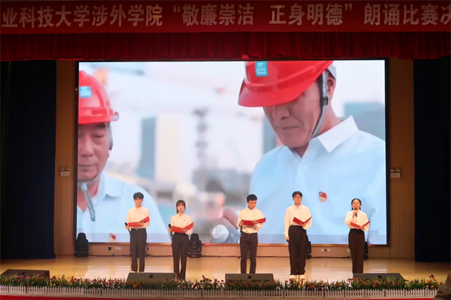 本次朗读比赛内容丰富、文体独特、形式多样。11支队伍开展了激烈的比拼。比赛在信息与工程学院的朗诵作品《清廉颂》中拉开帷幕,通过对廉洁品质的赞美,给大家徐徐吹来了廉洁的清风。接着,各位选手时而热情洋溢,时而温婉抒情,时而慷慨激昂的为大家朗诵了《爱廉说》《请铭记,忆清风》《清以廉洁,身服以尔》等一首首廉洁诗词、散文。参赛选手的作品既有对优秀廉洁品质的歌颂,也有发人深省的故事,给现场观众带来一场视觉和听觉上的清廉文化盛宴,展现了林涉外学子们锐意进取、踔厉奋发的精神风貌。