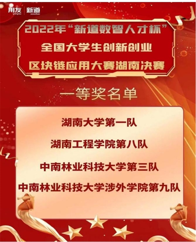 9月25日,由高等院校创新创业教育教学委员会、湖南省大中专学校学生信息咨询与就业中心指导,湖南大学工商管理学院、用友网络科技股份有限公司、新道科技股份有限公司主办,中南林涉外学院承办的2022年“新道数智人才杯”全国大学生创新创业区块链应用大赛湖南省决赛在我院二实验楼成功举办。
