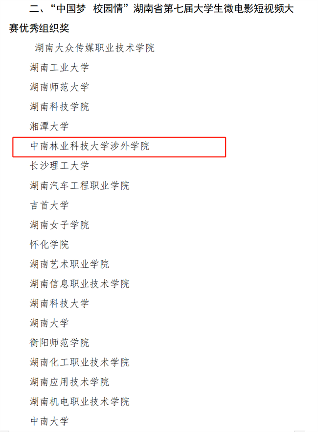 近日,中共湖南省委教育工委、省教育厅发布了《关于“中国梦 校园情”湖南省第七届大学生微电影短视频大赛评审结果的公示》 ,由中共湖南省委教育工委、湖南省教育厅主办,湖南教育电视台、湖南省高校易班发展中心承办的“中国梦•校园情”湖南省第七届大学生微电影短视频大赛评奖结果公布,我院选送作品《大青树下》获评二等奖,学校荣获优秀组织奖。