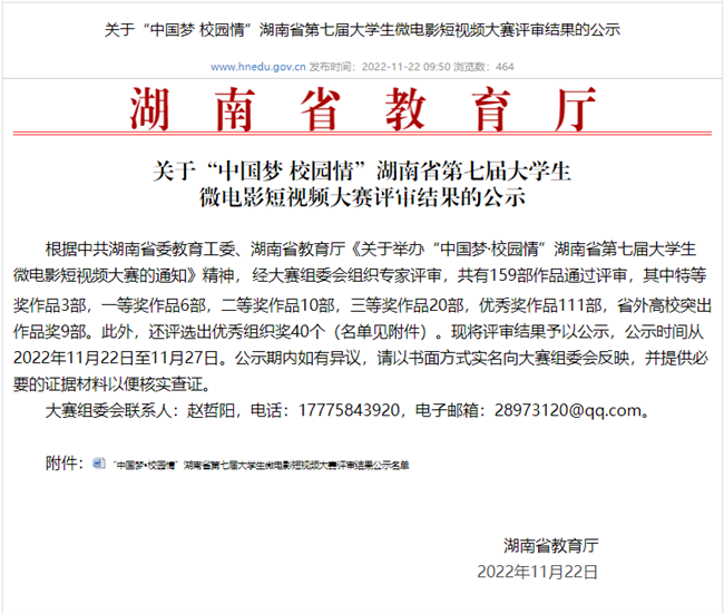 【喜讯】我院学子在湖南省第七届大学生微电影短视频大赛中荣获佳绩