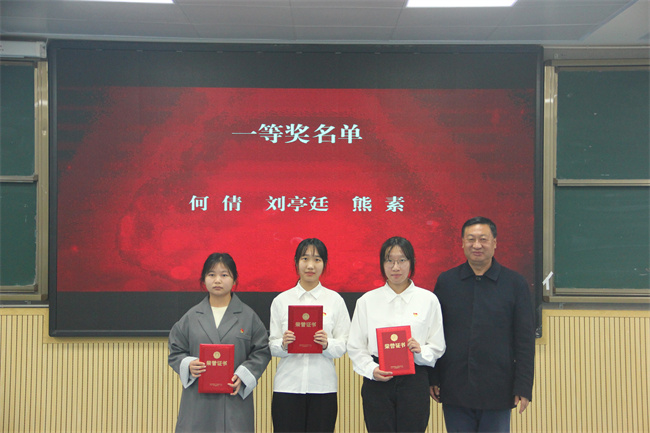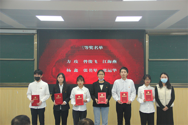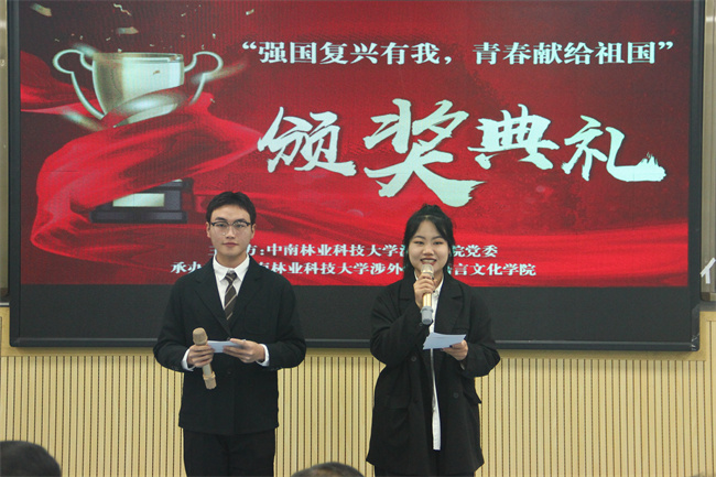 在颁奖典礼上,中南林业科技大学涉外学院董事长朱定强、党委书记章元日、院长助理王佳怡上台为本次比赛获奖者颁发获奖证书。