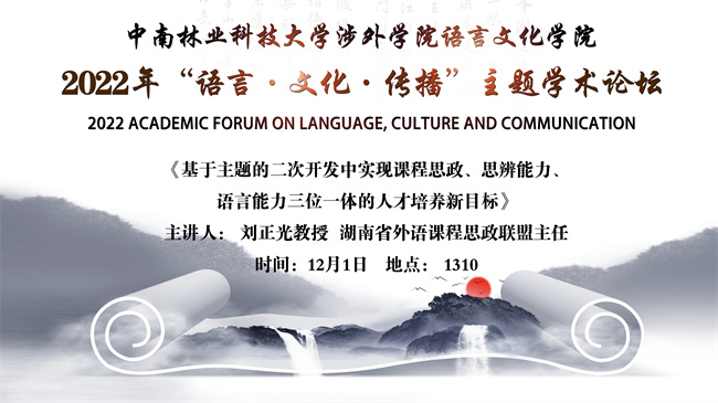 为营造学术氛围,提升学术兴趣,拓宽学术路径,语言文化学院于2022年12月1日下午举办“语言•文化•传播”主题学术论坛活动。