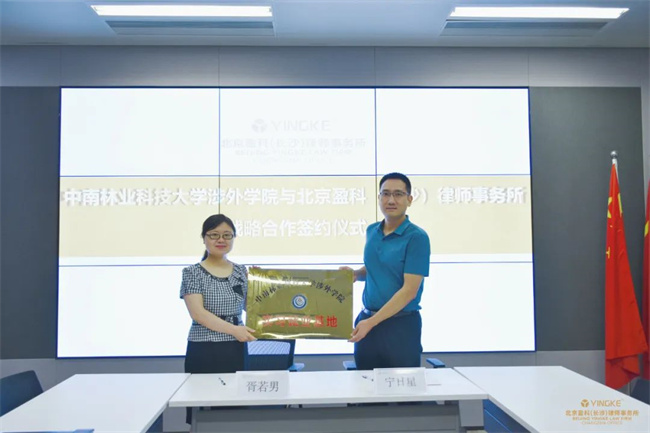 经济学院副院长胥若男与盈科长沙签署了校企战略合作协议,我院授予北京盈科(长沙)律师事务所“实习就业基地”牌匾。