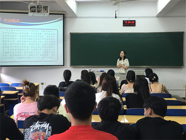 金融专业教研室主任高雪老师分别从专业概况、师资力量、实验室介绍、学科竞赛、升学就业五个方面向同学们详细介绍了专业情况。