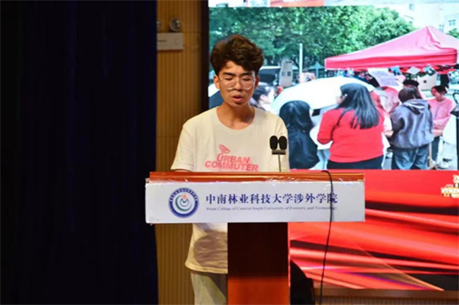 2020级金融二班黄生辉作为老生代表进行了发言。他以自己参加省级、国家级专业学科竞赛的经历告诉新到来的学弟学妹们应当如何对待大学四年。