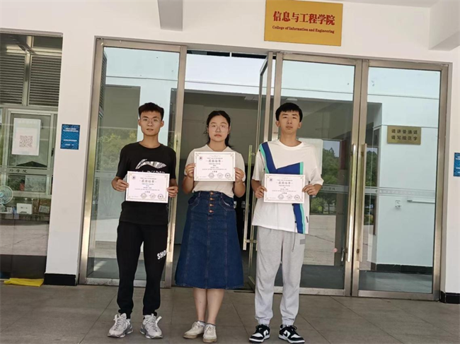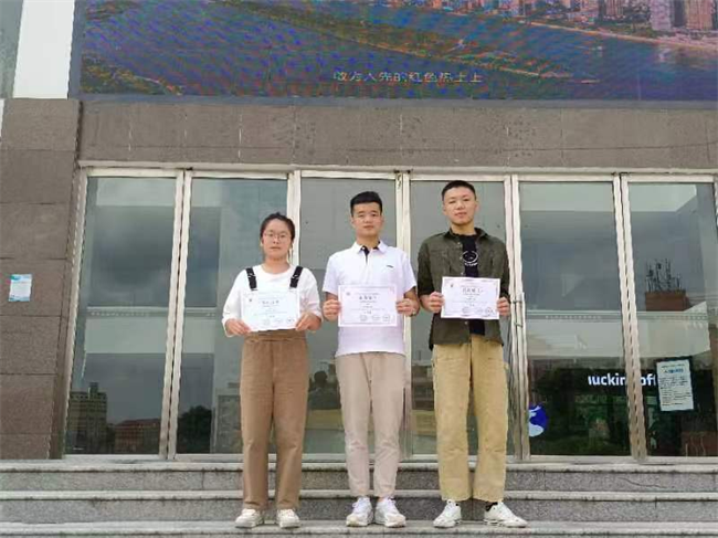 获得三等奖的熊悦玲、黄宇君、王博三位同学