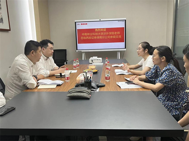 为落实教育部、省教育厅关于高校毕业生就业工作的有关文件精神,进一步深化校企合作,按照学院《访企拓岗促就业专项行动实施方案》安排,6月15日下午,经济学院金融教研室主任高雪率队赴西部证券股份有限公司长沙芙蓉中路证券营业部(以下简称“西部证券湖南分公司”)走访调研,与西部证券湖南分公司总经理柴隆进行座谈。经济学院金融教研室陈姣副教授、方雪睿老师,西部证券湖南分公司财富中心负责人王陆杰等参加活动。