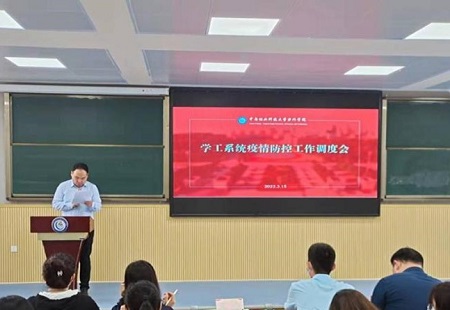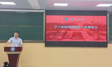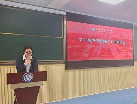 学院疫情防控办公室副主任粟臻通报了当前疫情形势,教育系统的防控要求和工作措施,指出应实行人员的网格化管理,严守校园出入排查关,继续做好疫苗接种工作。