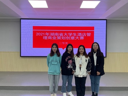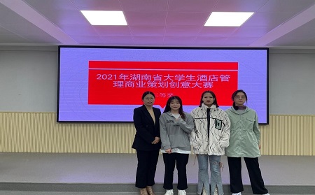 湖南省大学生酒店管理商业策划创意大赛,由湖南省教育厅主办、湖南师范大学承办,旨在进一步激发和培养高校旅游管理类专业学生的学习思维能力、研究创 新能力、实践操作能力和团队协作精神,营造创新创业人才培养的浓厚氛围。大赛分:“我眼中的未来酒店”和“我眼中的未来公寓”商业策划书的撰写设计,我院学生通过层层选拔,在老师们的指导下展现了各类富有创意,体现时代和产业新理念、 新动态、新要求,具有完整性、可行性和可操作性的方案。最终,由陈莉老师指导的2019级旅游管理专业学生任佳怡、解凌云、刘媛圆组成的空间站小组,由禹文婷老师指导的2019级旅游管理专业学生胡丹、段珍萍、蒋昕组成的为home奋斗队小组荣获省三等奖。