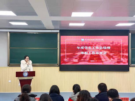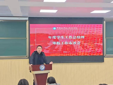 2022年1月7日上午,学工系统全体人员在一教学楼1310会议召开学工系统年度学生工作总结暨寒假工作布置会。院长助理刘诗福、各二级学院党总支书记和学工系统全体人员参加会议。会议由学工处副处长徐婷主持。