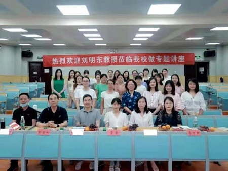 6月10日下午,湖南第一师范学院教授刘明东受邀来我院开展《外语课程思政教学:理据·原则·方法》专题讲座。中南林业科技大学涉外学院副院长马宗艳,语言文化学院院长彭爱和,党总支书记雷茜,教研室主任李小霞、李万红、纪望书及语言文化学院全体老师参加了讲座。