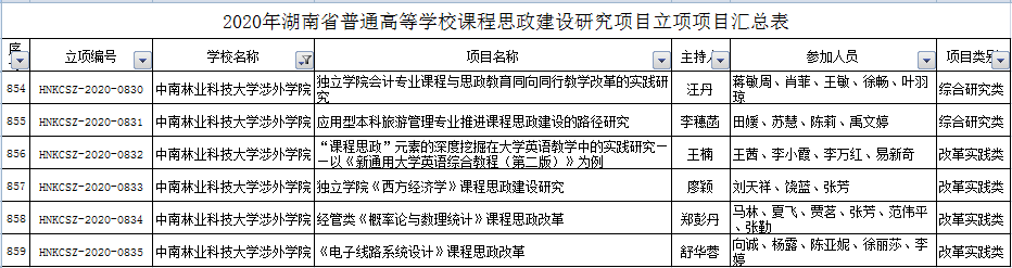 中南林业科技大学涉外学院 “2020年课程思政建设研究项目”荣获省级立项6项