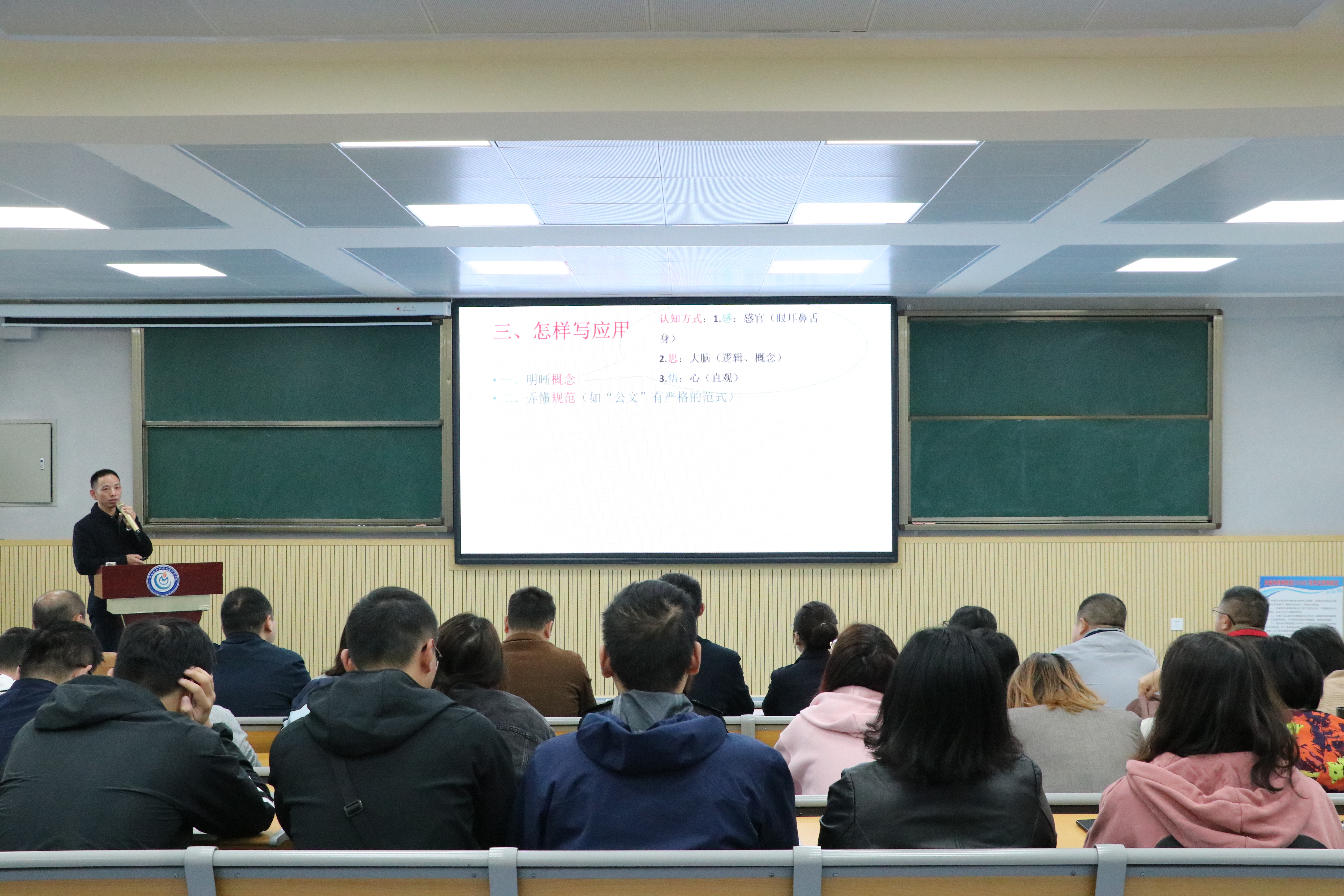 为进一步提高我院教职工的公文写作水平,掌握常用公文的规范写作技巧,10月22、23日,在1310多媒体教室举行了两场“公文写作”专题培训,全体行政、教辅、辅导员参加培训,本次培训会由教师纪望书担任主讲。