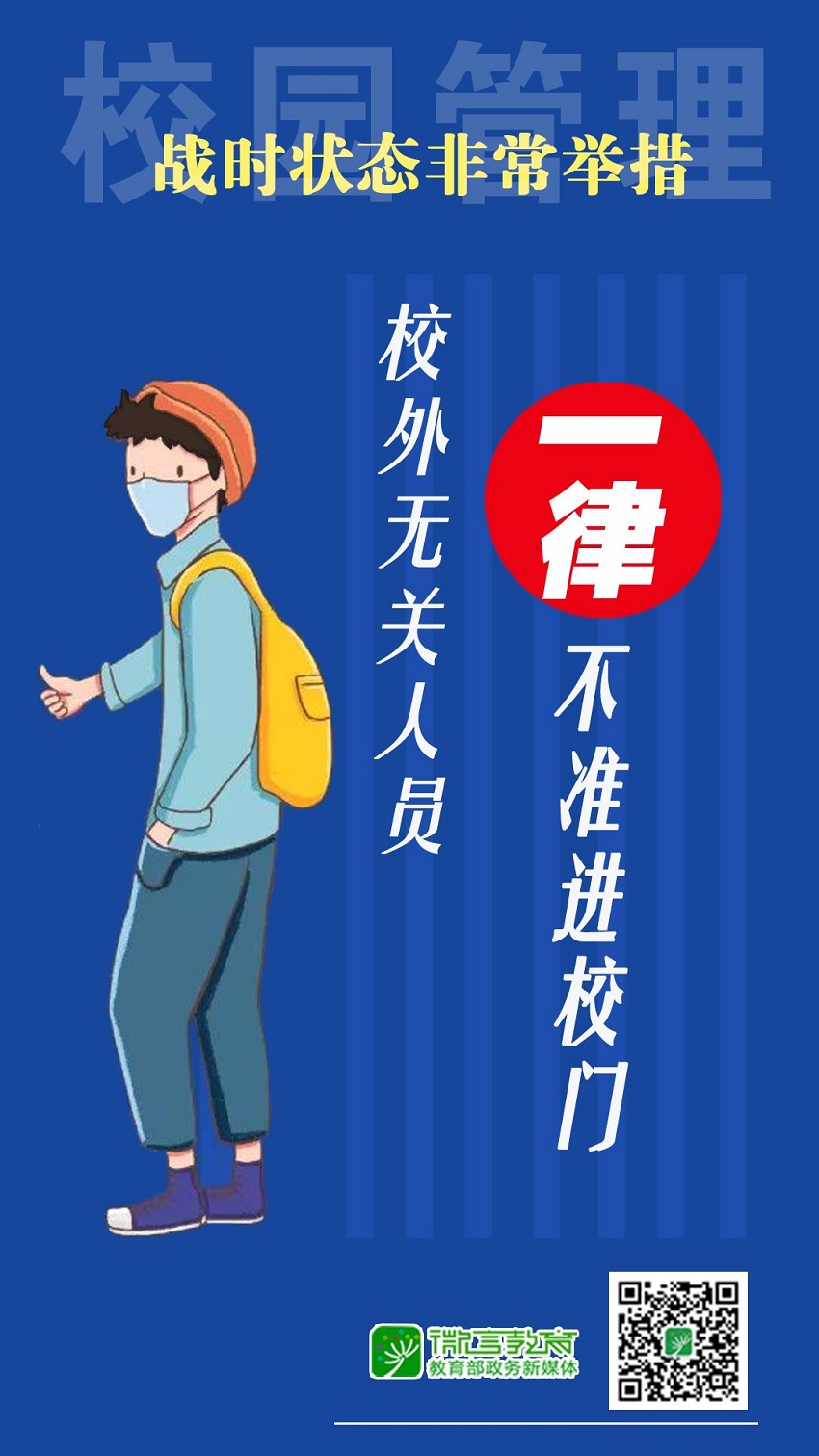 如何防止疫情向学校扩散,近日,教育部长陈宝生 在教育系统疫情防控视频会上强调战时状态要有非常举措要把问题想得更严重一些,应对措施更坚决一些,校园管理如何做好“严防死守” 一起来了解校园管理 .