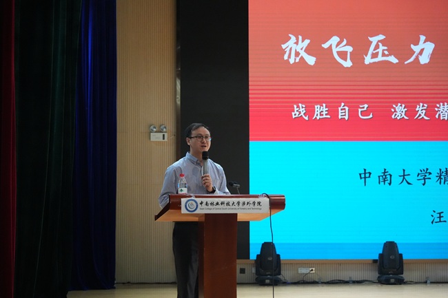 在主题讲座环节,汪健健副教授以“心理减压”为主题,从自我觉察、合理思维、健康疏泄和成熟应对四个方面,鼓励我院学子以积极心态面对压力,增强“自助-互助”意识,积极寻求帮助,提升心理韧性。