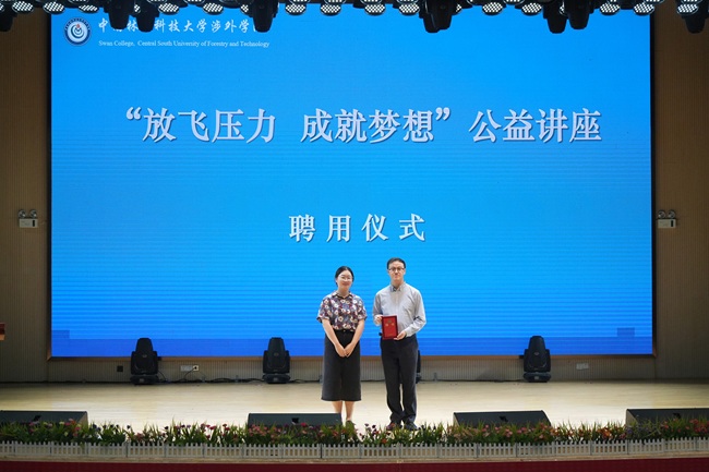 随后,益行者·社会公益学院副院长甘葳凝为汪健健副教授颁发“中南林业科技大学涉外学院公益导师”聘书,这标志着学院与中南大学湘雅二医院的合作从单向输出转变为双向赋能,未来将通过“公益心理讲座+心理健康志愿服务”等形式,共筑阳光校园。