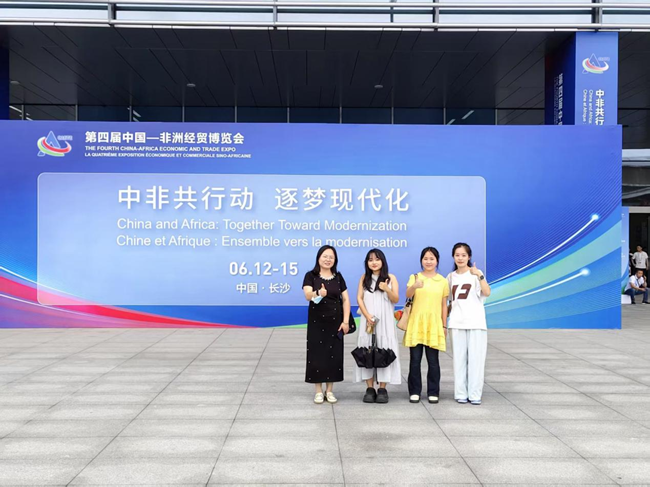 第四届中国-非洲经贸博览会6月12日在长沙盛大开幕。在开幕式当天,经济学院副院长肖菲副教授亲自带领三名优秀学生代表赴长沙国际会展中心,将理论课堂延伸至真实国际贸易前沿阵地,引导学生深度触摸中非经贸脉搏。