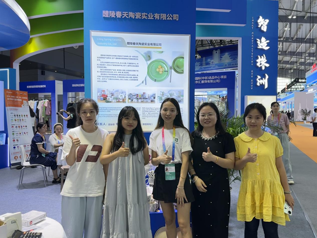 在肖院长带领下,师生一行重点走访了4家代表性中国出口企业展位。在kilimall中非跨境电商平台展台前,该公司人事负责人陈瑶女士介绍了公司非洲业务发展前景,并为学生解答了公司对于实习生、应届毕业生的要求;在醴陵春天陶瓷实业有限公司的展台前,业务负责人程美玉女士介绍了该公司出口方面的业绩和公司前景,双方就跨境电商直播领域的进一步交流合作达成共识。