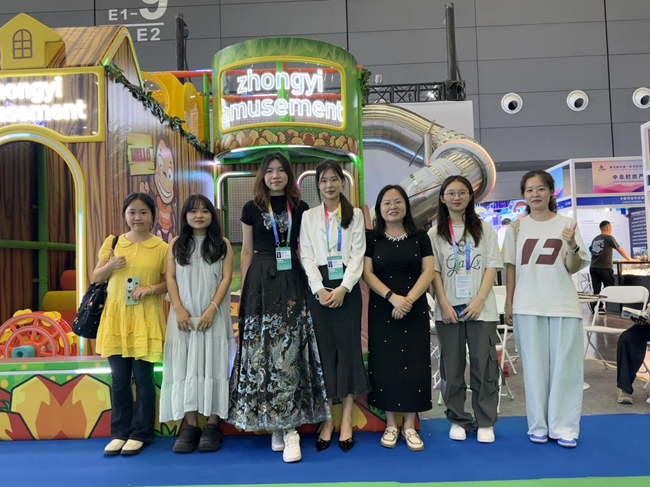 在湖南万卡福国际贸易有限公司展台前,公司海外事业负责人黄新磊先生介绍了该公司在国外出口二手车、二手设备的业务发展情况,双方就大学毕业生驻外工作的痛点进行了深入交流。在湖南省中一游乐设备有限公司展台前,双方就体育游乐设备在海外市场的业务现状进行了交流,双方在公司展示的游乐设备前合影留念。