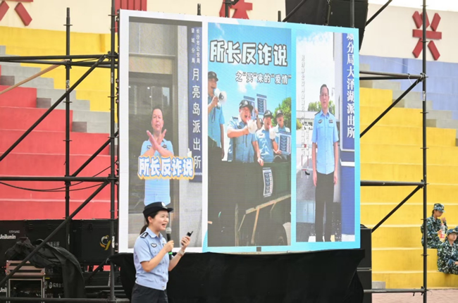 活动尾声,全体新生齐声喊出“不听不信不转账,‘望’穿骗局‘城’功守护”的反诈口号,表达了坚决抵御诈骗、主动学习反诈知识、争当校园反诈宣传员的信心与决心。