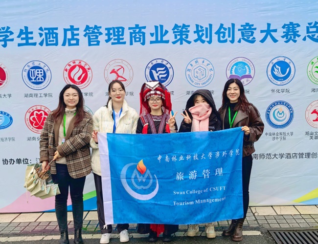在第五届湖南省大学生酒店管理商业策划创意大赛中,由23级旅游管理专业许婧、罗芳,21级旅游管理专业王玉君组成的“桃园三结义队”(指导老师李穗菡、禹文婷),从全省28所本科高校的235支队伍中,以现场表现第6名,综合成绩第8名的成绩获得了一等奖。由23级财务管理王雯熙,张诗瑀和龙金梅组成的“瑶”窕淑女队荣获三等奖(指导老师叶羽琼)。