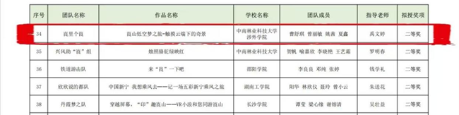 在第十一届湖南省大学生旅游专业综合技能大赛中,由23级旅游管理学生许婧、潘政扇,22级旅游管理学生侯新月,22级市场营销学生曹艳星同学组成的“长江后崀推前崀”队伍(指导老师李媛、禹文婷),在本次大赛中荣获一等奖。由22级旅游管理学生曹舒琪、曾丽敏、姚茜、夏鑫同学组成的“崀里个崀”队在本次大赛荣获二等奖(指导老师禹文婷)。由23级旅游管理学生阳慧颖、谢宁、罗通组成的“风平崀静”队,在本次大赛中荣获三等奖。(指导老师袁榕婧、禹文婷)