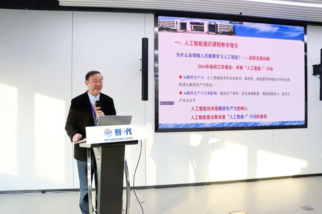 在专家讲座环节,王万良教授以“人工智能通识教育内容与教学方法探索与实践”为主题,分享了他在人工智能通识教育方面的研究成果与实践经验。