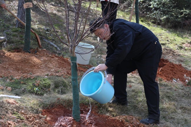 3月19日下午,由后勤处主办,学生工作处协办的以“绿色校园,你我同行”为主题的植树活动在枫叶岭举行。此次活动旨在践行习近平生态文明思想,引导学生树立生态保护意识,展现新时代青年的责任与担当。学院副院长张康龙、学生工作处副处长甘叶青、基建处副处长李盛和部分学生预备党员代表共40余人参加。后勤处处长助理姜腾晖主持活动。