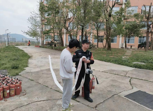 2024年4月8日中午,学生工作处组织2023级新生代表参加灭火器实际操作演练活动,在工作人员的指导下,学生们进行了现场灭火实操。此次演练,让学生进一步了解并掌握灭火器的使用方法以及处理突发事件的流程,从而提高大家的防火安全意识,筑牢了校园安全“防火墙”。