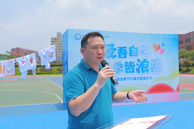 党委副书记孟志波为开幕式致辞,强调了心理健康对学生成长的重要价值,号召广大学生积极参与心理健康的各类活动,关注心理状况,重视心理健康。