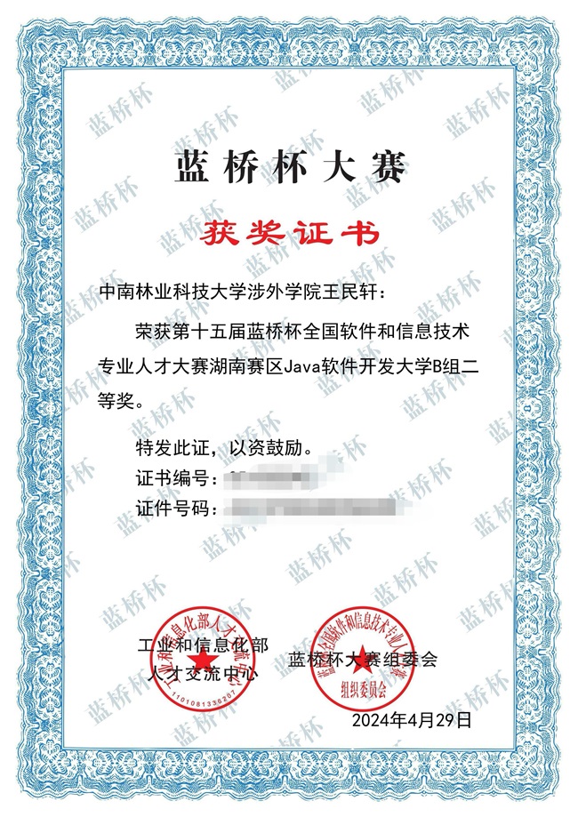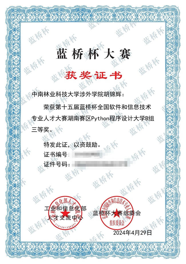 近日,由工业和信息化部人才交流中心主办的第十五届蓝桥杯全国软件和信息技术专业人才大赛省赛(软件类)圆满落幕。中南林业科技大学涉外学院作为此次省赛的赛点之一,在比赛中取得了优异成绩,共有20名学子斩获奖项。