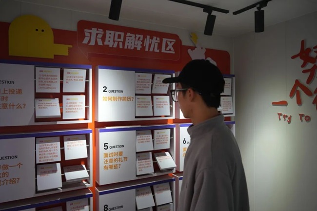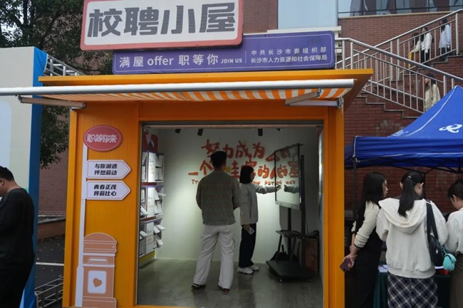 强化就业工作举措,全过程全方位促就业。中南林涉外学院积极借助政府与社会力量,打通需求与供给,实现学校人才培养与企业人才需求之间的“无缝对接”,提升人才培养的适应度。在本次双选会中,由市委组织部、市人社局联合打造的“智汇潇湘、才聚星城”校聘小屋入驻我院。小屋集合了求职推荐、政策宣传、职业指导、线上面试等多种功能,致力于在秋季双选会期间为学生们提供一站式的就业服务。