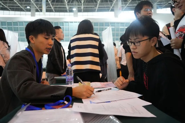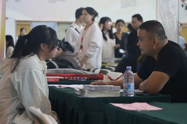 今年还特设“签约台”,为企业与毕业生进行正式合同签订,维护双方权益提供保障。现场不仅有严肃认真的面试环节,还有轻松愉快的交流氛围,毕业生们手持精心准备的简历,从容地与企业代表交流。企业代表们也耐心倾听,认真回答每一个问题。