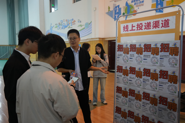 同时,学院还设“党员先锋岗”,为毕业生与用人单位提供就业服务,发挥学生党员先锋模范带头作用;提供高质量会场后勤保障,持续优化用人单位进校流程。