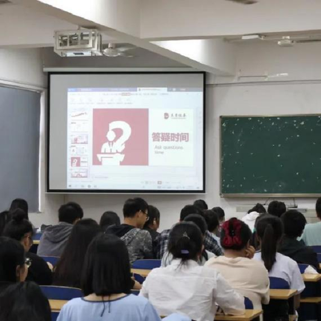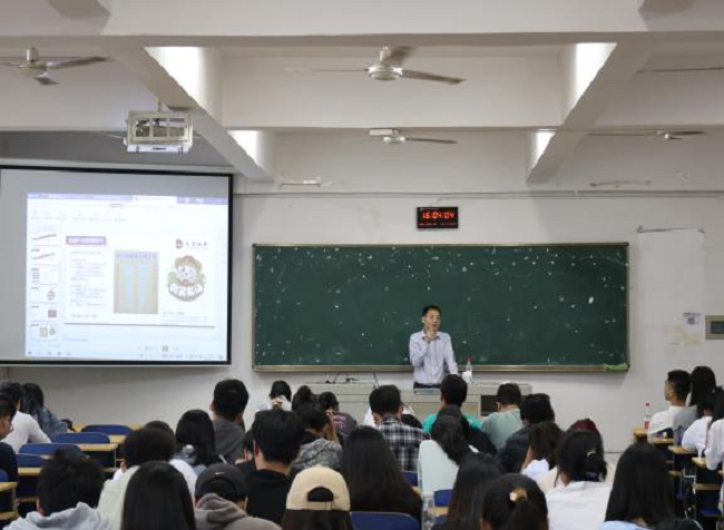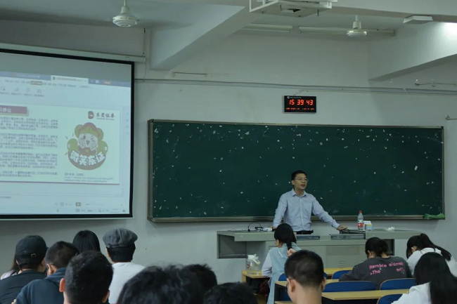 宣讲会开始之前的签到环节,企业播放了自己的宣传短片,企业文化氛围浓厚。东莞证券公司的工作人员从认识券业、了解职业、公司介绍、如何加入四个方面介绍了东莞证券。东莞证券股份有限公司成立于1988年6月22日,是东莞市属国有控股重点企业,也是全国首批承销保荐机构之一。30多年来,东莞证券以经纪、资管、投行三大业务为核心,积极发展证券自营、私募基金、另类投资等业务,已成为全国性综合类证券公司。目前,东莞证券在全国范围有逾3000名员工,旗下分支机构达94家(其中营业网点92家,上海分公司1家,深圳分公司1家),另全资拥有东证锦信投资管理有限公司、东莞市东证宏德投资有限公司,并参股华联期货有限公司。