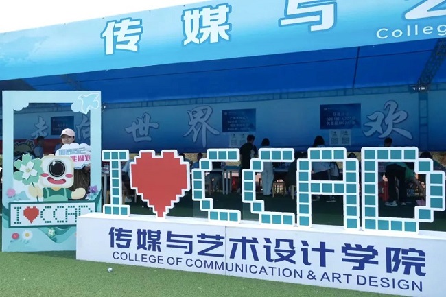传媒与艺术设计学院为新生准备了自己设计的大礼包,内含小咔扇子、信和各专业专属贴纸等,展示专业特色。在炎炎夏日下,为新生们特别准备旺旺碎冰冰等零食,给予他们清爽的体验。