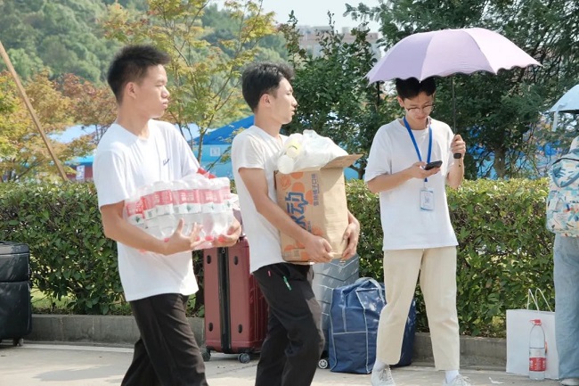 举目望去,负责报到的老师、学长学姐和志愿者们热情亲切地向新生们介绍报到流程。“报到的流程很顺利,志愿者和工作人员们非常热心,我很快就办完了全部手续。”来自株洲的徐同学和家长手拿学院精心准备的新生资料袋和校园卡,心情激动地对小编分享他的感受,这样的温馨与高效让他倍感欣慰。