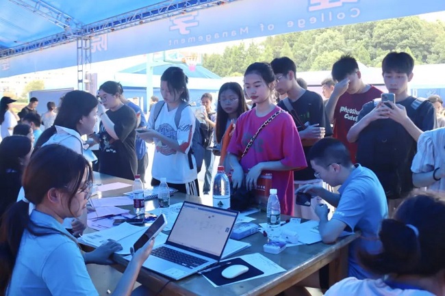 管理学院为新生准备签名墙,给予他们展示自我的机会,并留下祝福和留言,分享自己的大学梦想和期望,与学院共同见证大学美好的开始。